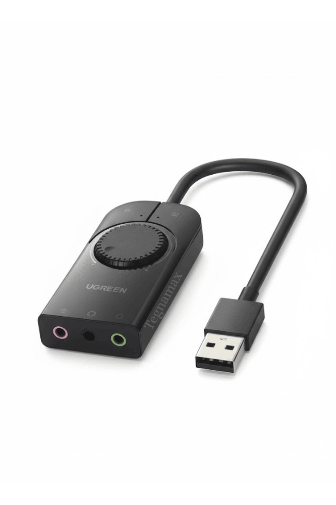 El adaptador de sonido ugreen cm129 es una tarjeta de sonido externa USB 2.0 que añade audio estéreo y micrófono a cualquier PC o laptop. Incorpora una perilla de volumen de fácil acceso y botón de mute para silenciar al instante, perfecto para clases, reuniones y streaming.